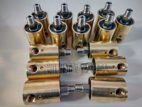 我公司生产的高速旋转接头主要密封原件均采用进口密封材料,有效避免杂质随设备运转进入而造成的磨损;转体采用特殊处理工艺可防止磨损及腐蚀,同时采用两个进口瑞典高精密轴承支撑整个铜壳体,使其在2000RPM的转速下长期平稳运转而无泄漏。